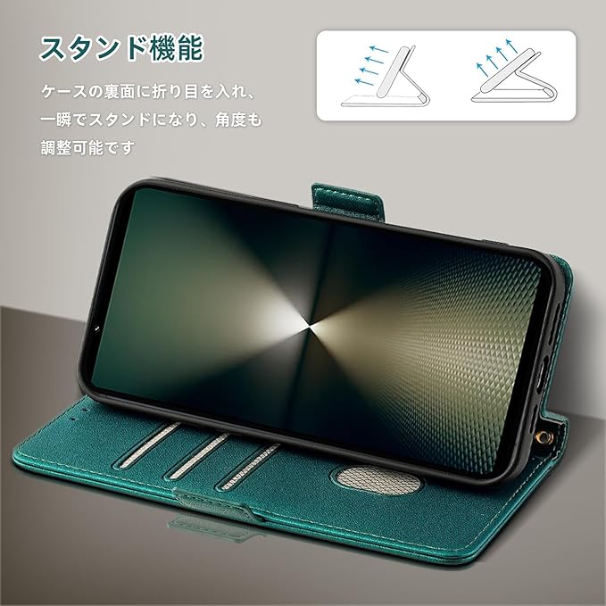 RanBluu コンパチブル Sony Xperia 1 VI ケース 手帳型 ソニー エクスぺリア 1 VI 用 高級PUレザーケース カバー スマホケース 財布型 カード収納 マグネット カメラ保護 横置きスタンド機能 ストラップ付き 耐摩擦 耐衝撃 全面保護(Sony Xperia 1 VI 対応 グリーン)
