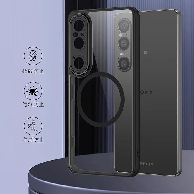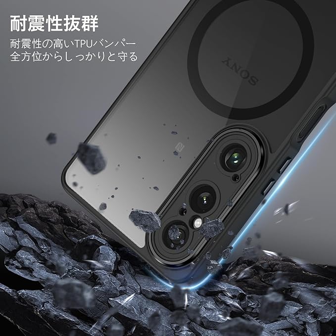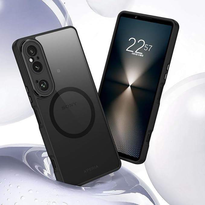 VENINGO Xperia 1 VI ケース SO-51E カバー クリアバック ブラックフレーム Magsafe対応 マグネット搭載 ワイアレス充電 薄型 米軍MIL規格 耐衝撃 黄ばみなし TPU+PC カメラポロテクター 全面保護 ストラップホール付き マット仕上げ スマホケース Sony エクスペリア1 vi ケース 6.5インチ ブラック
