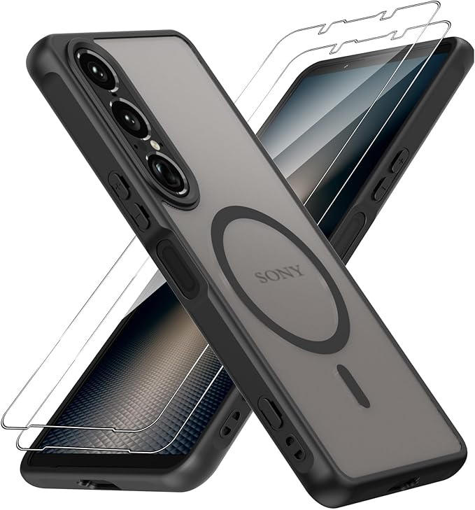 【1個+2枚セット】Xperia 1 VII ケース(1個 MagSafe対応)+ガラスフィルム(2枚) SO-51F/XQ-FS44/SOG15 Greerass Xperia 1 VII 専用 カバー ガラスフィルム付き MagSafe対応 薄型 超軽量 耐衝撃 擦り傷防止 指紋 汚れ防止 手触り良い 着脱簡単 (ブラック)