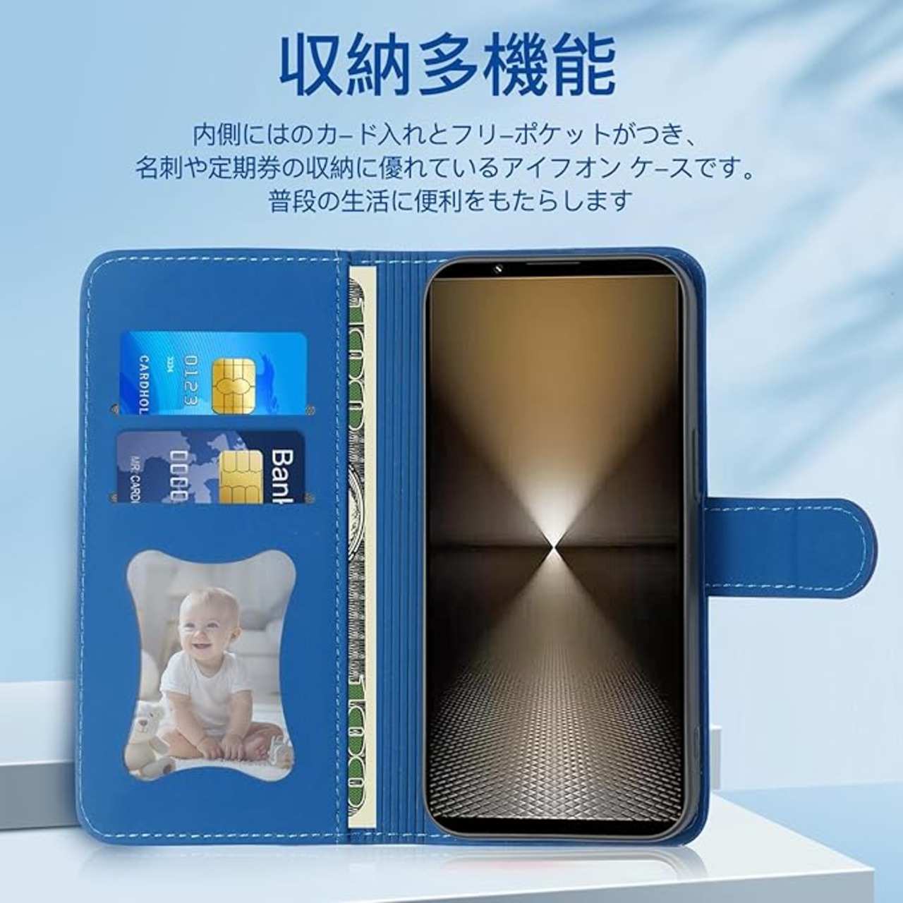 TEDTIKJT Sony xperia 1 VIIケース 手帳型 エクスペリア1 第7世代 ケース 携帯カバー 全面保護 高級PUレザーとデニムの組み合わせデザイン xperia 1 vii 手帳型ケース カード収納ポケット 横置きスタンド機能 エクスペリア1vii カバー 財布型 シンプルなビジネススタイル エクスペリア1vii 6.5inch スマホケース -青