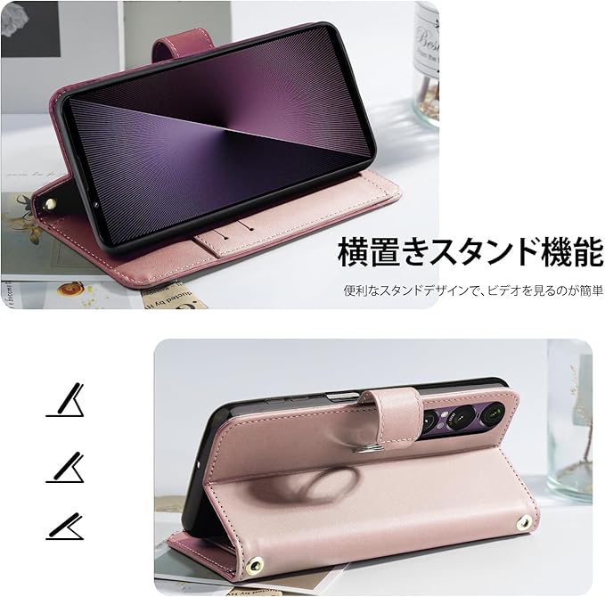 【iffeenny】Xperia 1 VII ケース 手帳型 エクスペリア1 vii 手帳型ケース SO-51F 携帯カバー 斜めストラップ付き 長さ調節可能 カード収納 スタンド機能 操作が簡単 便利 擦り傷防止 人気 衝撃吸収 財布型 6.5インチ ローズゴールド