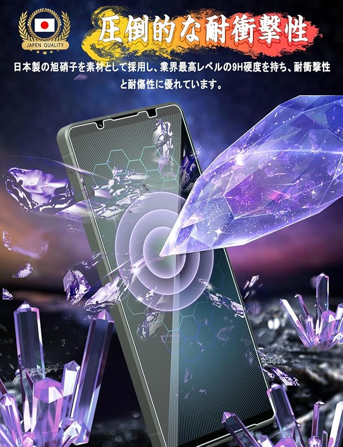 【品質保証】 365日内商品使用上何か問題がある場合、お気軽に弊社までご連絡くださいませ。お客様からのお問い合わせ内容に応じて代替品交換・返金対応を提供致します。(商品の返送は不要、お一人様につき1回限り)【最高硬度9H?飛散防止】日本旭硝子素材を採用、業界最高レベルの9H硬度、ハードコーティング技術により、衝撃を緩和し画面の破損を最低限まで抑え、すり傷や指紋からもスクリーンをしっかりと保護します。万が一非常に強い力や落下等の衝撃により破損する場合が御座いましたら、その際、高品質な抗粉砕フィルム