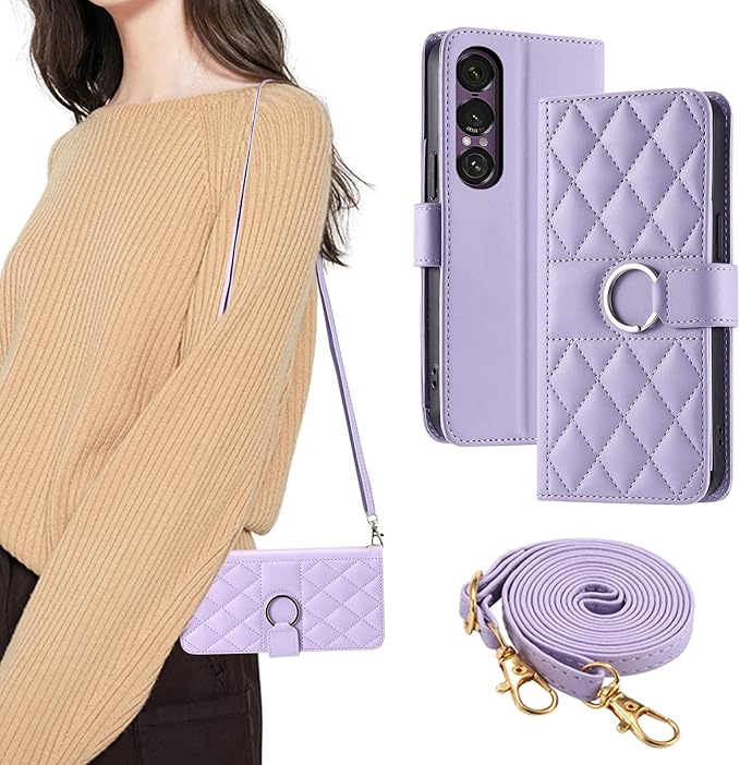 【iffeenny】Xperia 1 VII ケース 手帳型 エクスペリア1 vii 手帳型ケース SO-51F 携帯カバー 斜めストラップ付き 長さ調節可能 カード収納 スタンド機能 操作が簡単 便利 擦り傷防止 人気 衝撃吸収 財布型 6.5インチ パープル