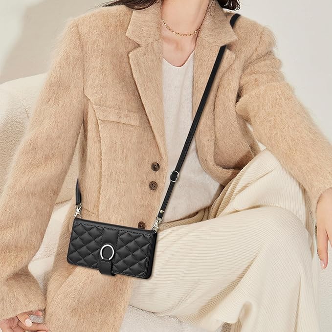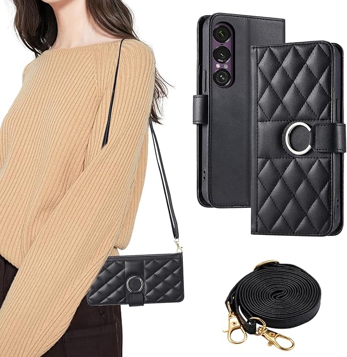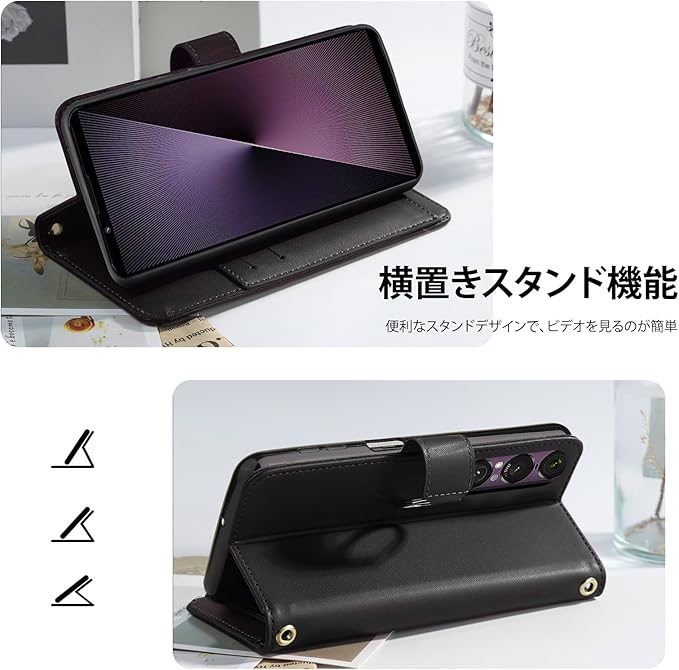 【iffeenny】Xperia 1 VII ケース 手帳型 エクスペリア1 vii 手帳型ケース SO-51F 携帯カバー 斜めストラップ付き 長さ調節可能 カード収納 スタンド機能 操作が簡単 便利 擦り傷防止 人気 衝撃吸収 財布型 6.5インチ ブラック