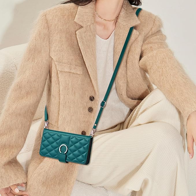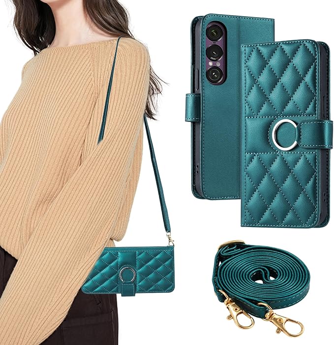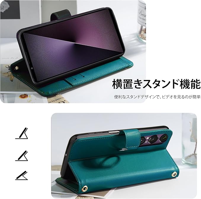 【iffeenny】Xperia 1 VII ケース 手帳型 エクスペリア1 vii 手帳型ケース SO-51F 携帯カバー 斜めストラップ付き 長さ調節可能 カード収納 スタンド機能 操作が簡単 便利 擦り傷防止 人気 衝撃吸収 財布型 6.5インチ グリーン