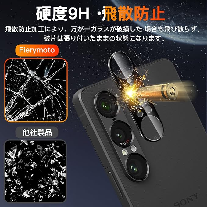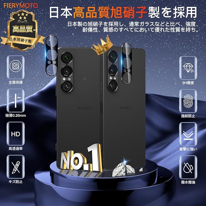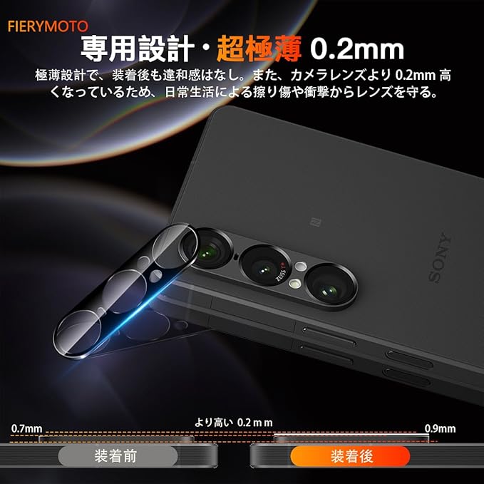 【超高品質?日本旭硝子素材採用】 エクスペリア 1 VII レンズ保護フィルムは日本旭硝子素材を採用します。高品質な素材で衝撃を緩和レンズの破損を最低限まで抑えます。ガラス420℃の焼戻炉で6時間加熱し、二次強