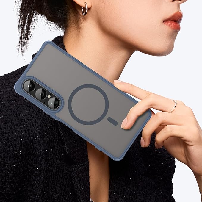 Panda Baby Sony Xperia 1VIIケース 半透明 エクスペリア1VIIカバー 薄型 耐衝撃バンパー マット質感 マグネット搭載 MagSafe対応 (ブルー)