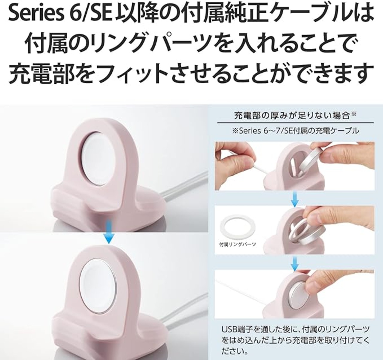 エレコム Apple Watch 充電スタンド シリコン製 横置きタイプ 小型 コンパクト ケーブル装着可 [Series Ultra 8 7 6 SE 5 4 3 2 1 / 49mm 45mm 44mm 42mm 41mm 40mm 38mm]対応 ピンク AW-DSCHSPN