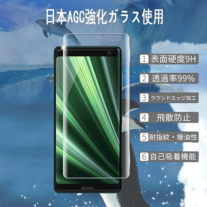 【2枚セット】 用 Xperia XZ3 ガラスフィルム 指紋認証対応 2枚 XZ3 SO-01L SOV39 801SO フィルムセット 【 日本硝子素材 9H強度 】 対応 Xperia XZ3 フィルム 強化ガラス 保護フィルム ケース 高透過率 3D Touch対応 厚さ0.26超薄型 飛散防止 高感度 耐衝撃 指紋・汚れ防止 ゼロ気泡 ラウンドエッジ加工 簡単貼り付け