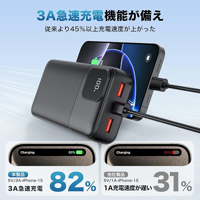 モバイルバッテリー 50000mAh 軽量 小型 大容量 急速充電 Type-C出入力 3台同時充電 LCD残量表示 iPhone/Android/iPad全機種対応 携帯充電器 スマホ充電器 PSE認証済 出張/停電/地震/防災グッズ【災害時に役立つ】 a