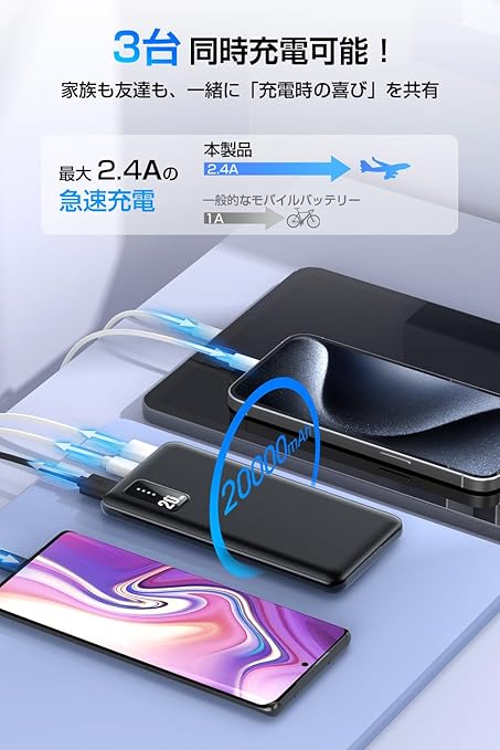 モバイルバッテリー 大容量 軽量 小型 【2025新登場】20000mah 薄型 3台同時充電 急速充電 iPhone iPad Android スマホ全機種対応 充電器 Type-C 入出力兼用 モバイルバッテリー タイプc LED残量表示 PSE技術基準適合 安全設計&回路保護 機内持ち込み可 コンセント 旅行/出張/アウトドア/停電/防災用 コンパクト 日本語取扱説明書 かわいい a