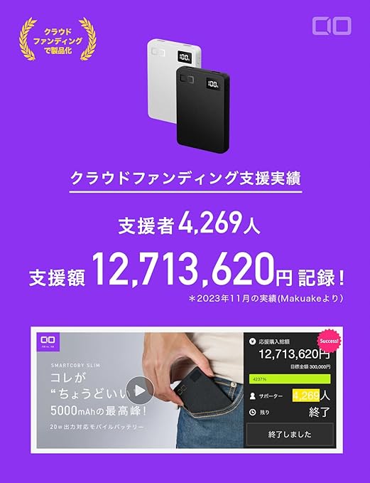【薄さ12mm】薄型化と小型化を両立し、スマートフォン(iPhoneやGalaxy、Xperia等のAndroidスマホ)との重ね持ちも楽々できるサイズ感を実現しました。バッグやポーチのポケットなど狭いスペースにも楽々収納可能です。カフェや新幹線、飛行機、出張や旅行にも最適です。