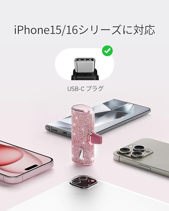 iWALK モバイルバッテリー 超小型 軽量 きらめくかわいいモバイル充電器 USB Type-C 直接充電 コネクター内蔵 コードレス 4500mAh コンパクト おしゃれ iPhone15/16シリーズ iPad AirPods Android対応 ギフト プレゼントとしてもぴったり PSE認証済 ピンク a
