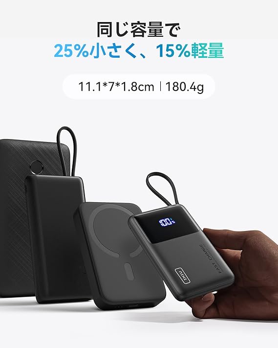 INIU モバイルバッテリー 内蔵ケーブル付き 10000mAh 22.5W 軽量 小型 大容量 急速充電 PD QC【USB C入出力 残量表示 PSE認証済 パススルー機能】モバイル バッテリー 携帯充電器 アウトドア/防災/緊急用の必携品 iPhone 16 / 15 & Android iPad その他各種対応 日本語取扱説明書付き【ブラック】 a