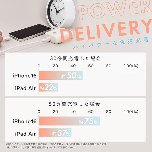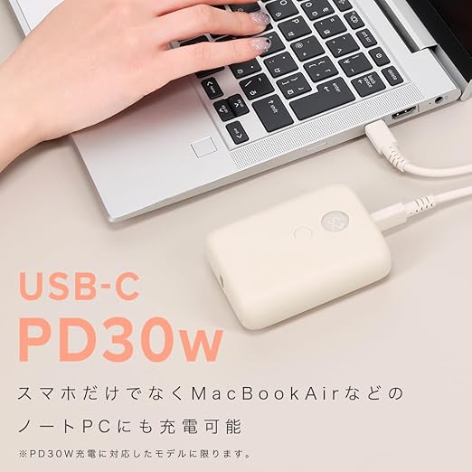重さ約182g 国内最小最軽量クラス10,000mAhモバイルバッテリー(2024年8月時点自社調べ):PD30Wの入出力に対応し、スマートフォン・タブレットの急速充電や、ノートパソコンの充電まで対応。 10000mAhの大容量ながら、重さ約182gと国内最小最軽量クラスのコンパクトサイズを実現 ※2024年8月時点(自社調べ) 幅広い用途で使い勝手と、持ち運びのしやすさを両立した一台です。