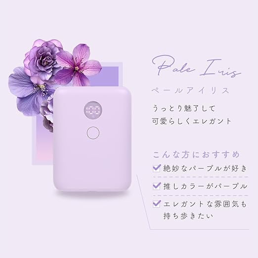 MOTTERU (モッテル) 残量表示機能付き モバイルバッテリー 10,000mAh PD30W入出力 184g PSE適合製品 iPhone 16e 16 15 iPad Galaxy Android スマートフォン タブレット各種 機内持込 シリコンケーブル付属 ペールアイリス MOT-MB10003-ECPU a