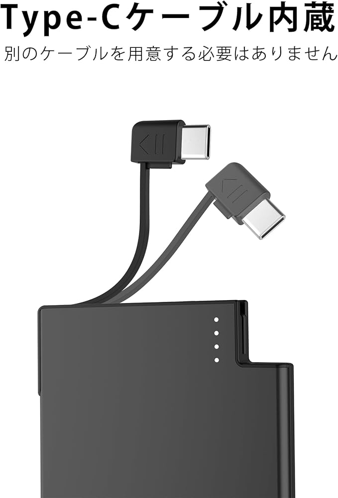Auskang モバイルバッテリー 薄型 iPhone15Pro対応 2500mAh 軽量 コンパクト わずか4.5mm Type-Cケーブル内蔵 Android対応 機内持ち込み可 専用充電器 持ち運び便利 地震/台風/災害/旅行/出張用【PSE認証済】ブラック a