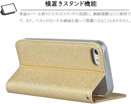 [Elick] iPhone 5 / iPhone 5S / iPhone SE 兼用 ケース カバー 薄型 高級PUレザー 手帳型 マグネット式 ベルトなし ストラップ付き カード収納 アイフォン 5 5S SEスマホケース ゴールド a