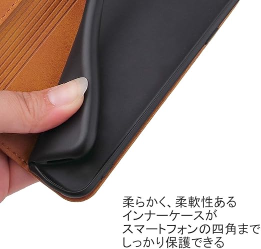 ?【耐衝撃性】耐熱性と柔軟性を誇る上質なPUレザーで作られ、手触り良い、落下時の衝撃を効率的よく吸収できるようにケースの各コナーの裏側が設計されています。丈夫でほど良い厚みで、落としてもスマホをきちんとお守れます。