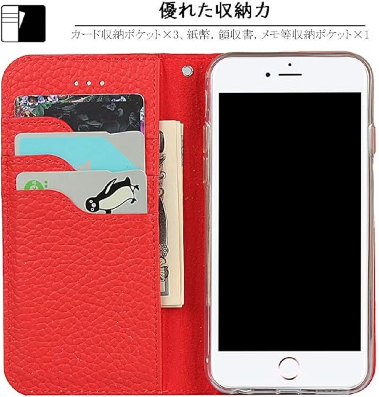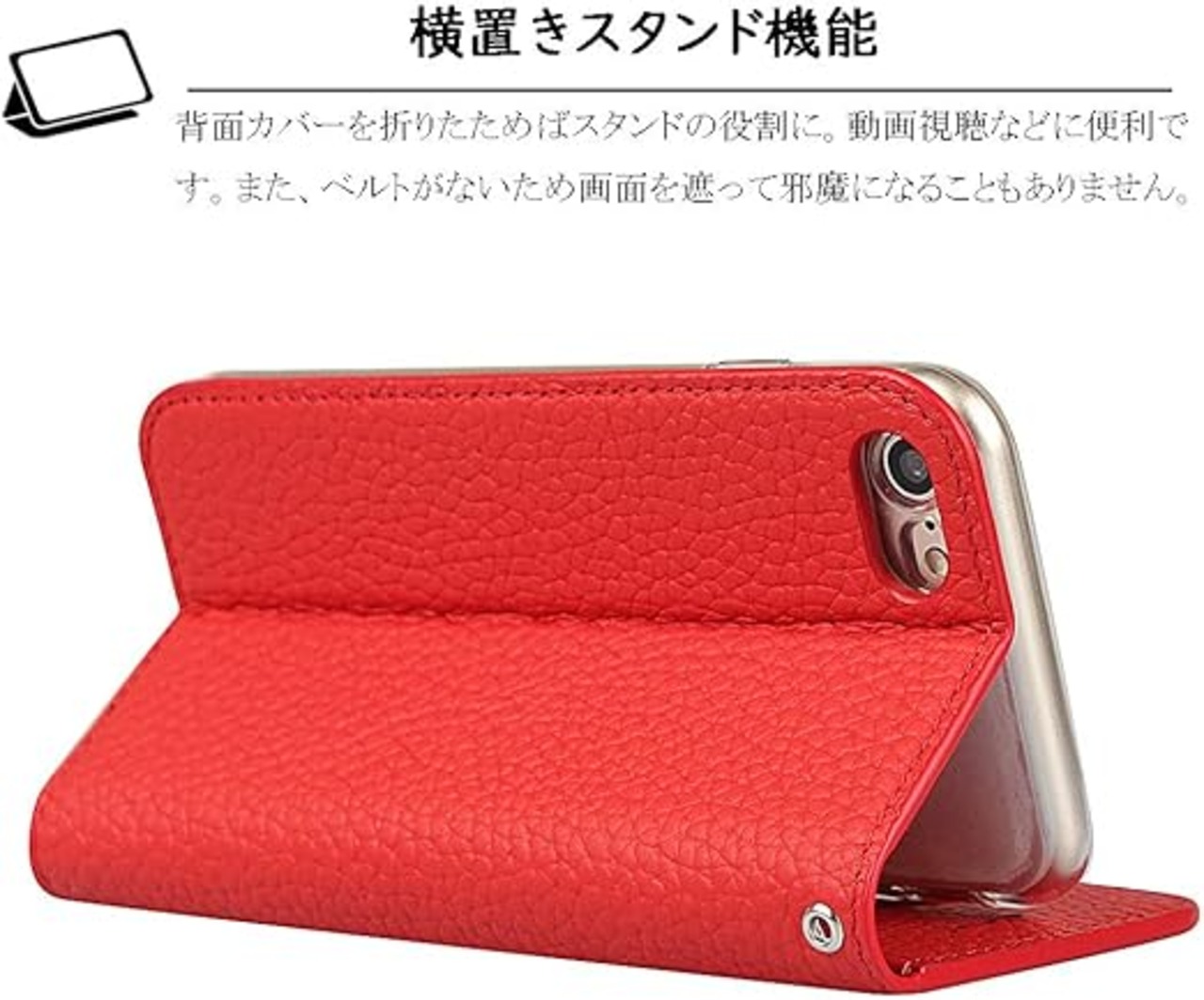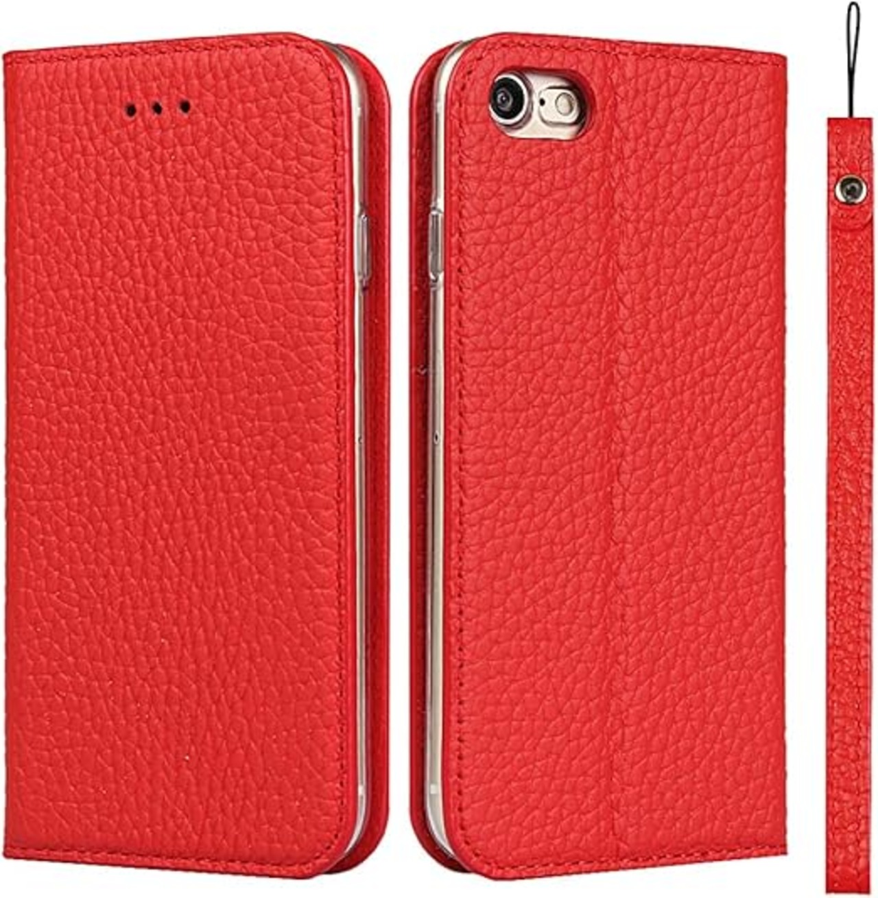 Elick iPhone SE 第3世代 第2世代 iphone 8 iphone 7 ケース 手帳型 高級牛革 アイフォンSE 第3/2世代 ケース アイフォン8 アイフォン7 ケース 手帳型 本革 マグネット式 スタンド機能 カード収納 ストラップ付き iPhone8 iPhone7 ケース カバー レッド a