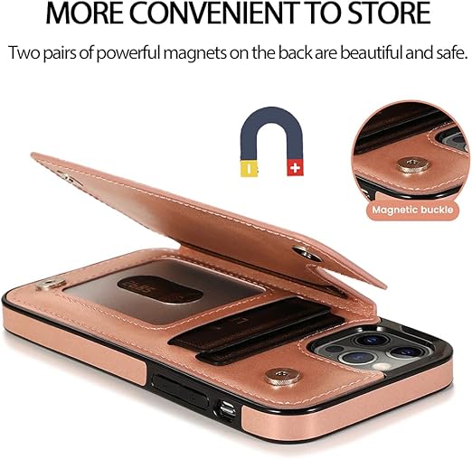 NKECXKJ iPhone 12 Pro Max 用ケース, iphone12promax スマホケース 携帯ケース カバー Case いphone12promax 純正 PUレザー 財布型カードホルター付き収納 スタンド機能耐衝撃 アイフォン12promax iphone12プロマックスレディース メンズ(ローズゴールド ピンク ) a