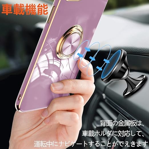 iPhone SE3 / SE2 / 8 / 7 ケース リング付き アイフォン SE 第3世代 第2世代 カバー リング 耐衝撃 スリム tpu ソフト シリコン スタンド機能付き 360回転 車載ホルダー対応 (パープル) a