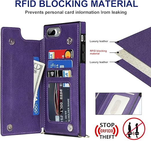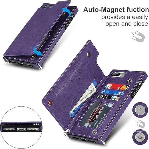 Cavor iPhone7 iPhone8手帳ケース iPhoneSE 第2/3世代 iPhoneSE2 SE3 SE 2022 ケース手帳型ショルダー クロスボディ【RFID機能】iphone se3 手帳型ケース iPhone SE2スマホケー ショルダーランキング 定期入れ付き iPhone 8 財布型 カード収納 ケース Qi急速充電対応 ICカードホルダー レンズ保護- パープル a