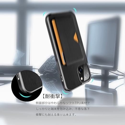 【背面カード収納付】 iPhone 13 mini ケース 上質な手触り カバー 耐衝撃 軽量 薄い ICカード収納 OWLGuardian スマホケース (ブラック) a