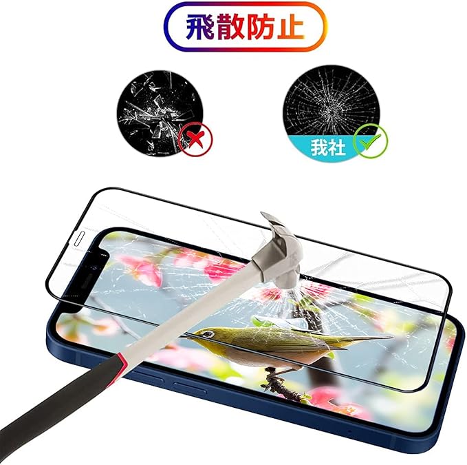 【高品質素材製、硬度9H】一般的なガラス保護フィルムよりも耐久性に優れたハードコーティング技術により、9Hの硬度を実現。特殊な飛散防止処理により、ガラスが割れても飛散せず、破片が付着したときに携帯電話の画面を傷から安全に保護できる。