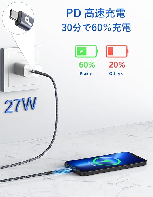 【2M 2本セット PD急速充電】PD対応のUSB-C Appleの新しいバージョンC94端子を使用し(より耐久性が高い)、 USB-C ポート内蔵のPD対応ACアダプタ(PD18W、20W、30W、 45W、 61W、 65Wまたは 87W USB タイプC パワーアダプターおよびPD 充電器)と組み合わされているため,と一緒に使用することで、わずか30分で50%まで充電することができます。