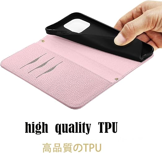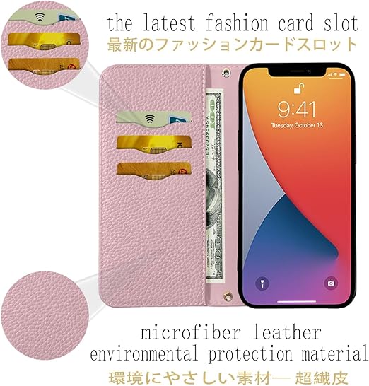 iPhone 13 Pro ケース 手帳型 超繊皮カバー 手帳型 耐衝撃 保護カバー 内蔵マグネット財布型 携帯カバー カードポケット スタンド機能 リストバンド NanHou - ピンク a
