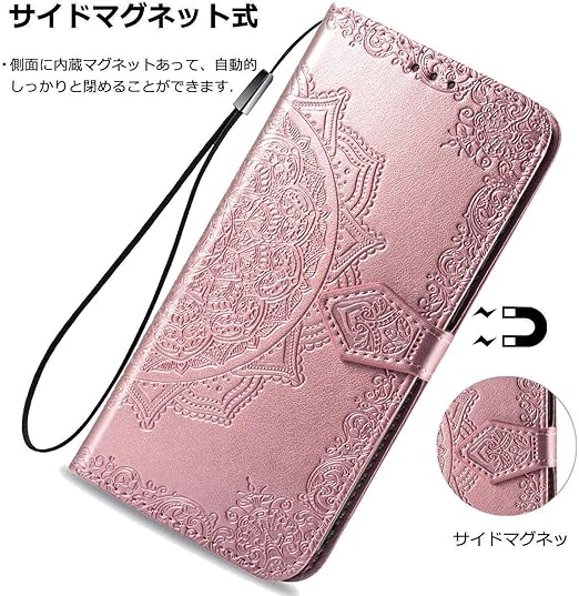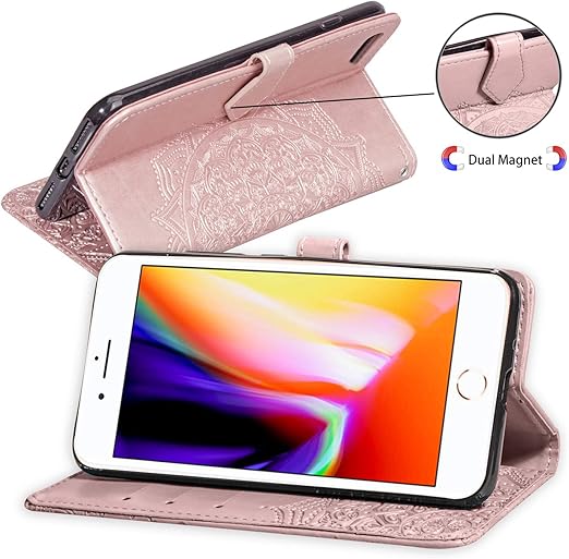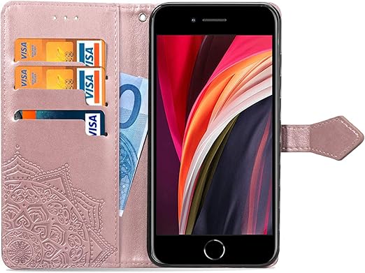に適用するiPhone SE 第3世代 (2022) / iPhone SE 第2世代 (2020) / iPhone8 / iPhone7 ケース 手帳型 ノートブック型携帯電話保護カバー多機能携帯電話ホルスター財布携帯電話ホルダーバンプパターンテクスチャ耐久性摩擦耐性携帯電話ケース男性と女性に適した多色オプション (マンダラローズゴールド) a