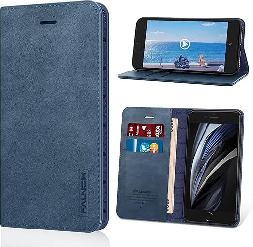 KPG iPhone SE ケース 第3世代/SE 第2世代/8/7 ケース iphone8 ケース 手帳型 iPhone se2 ケース レザー TPU スマホケース iphone se 携帯ケース 放熱性 耐衝撃 iPhone se3/se2 iPhone8 iPhone7 軽量 着脱しやすい マグネット式 カード収納 スタンド機能 4.7インチ対応 (ネイビー) a