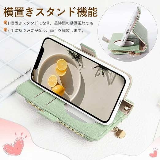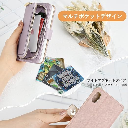 多機能なお財布・ショルダーストラップ付きスマホケース 長さを調節可能なショルダーストラップ付き、肩掛け、斜め掛けができます。スマホをうっかり紛失してしまう