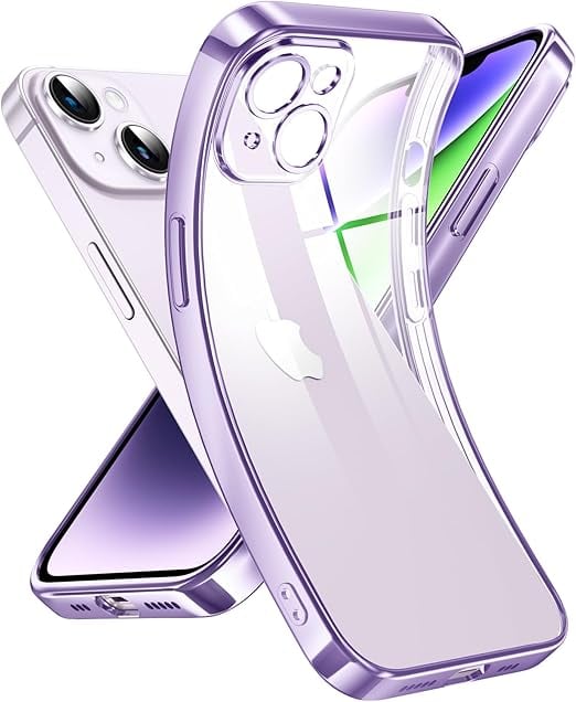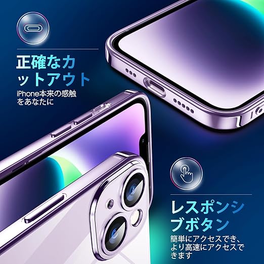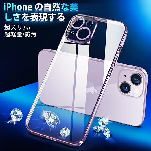 Supdeal iPhone 14 ケース クリア 透明電話カバー 米軍MIL規格 軽量耐衝撃 カメラレンズ保護 シリコン 擦り傷防止 黄変防止 TPU 保護ケース ワイヤレス充電対応 極薄でソフトな素肌感覚 高精細透明 アイフォン 14 カバー 6.1インチ(パープル) a