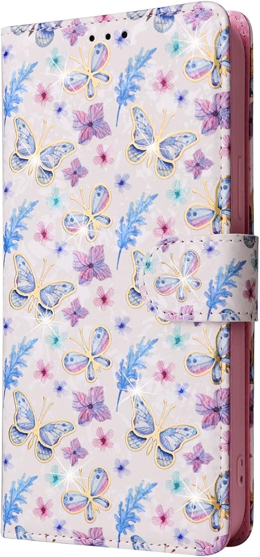 [Dunalnuz] iPhone SE 第2世代/SE 第3世代 用 ケース 手帳型 iPhone 7/8 se2 se3 対応 ケース かわいい おしゃれ 花柄 デザイン ストラップ付き カード収納 小銭入れ ポケット スタンド機能 マグネット式 手帳 カバー アイフォン スマホケース (青い蝶) a