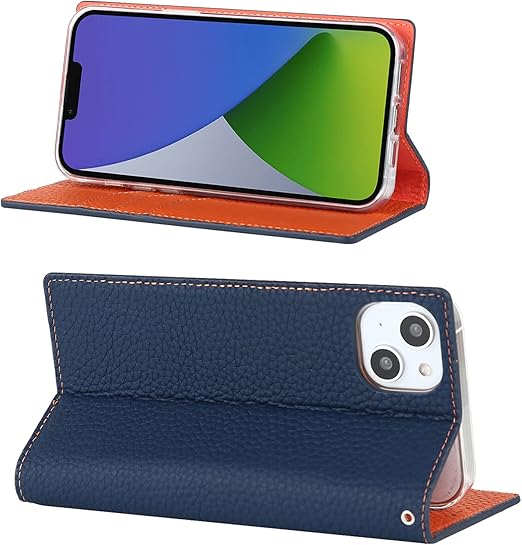 For iPhone 14 6.1'' ケース手帳型 iPhone 14 ケース Pelanty 牛革製品 本革レザー iPhone14 財布型カバー カード収納 スタンド機能 内蔵マグネット 手作り柔らかい スマホケース アイフォン14 携帯カバー ストラップ付 ヘッドフォンケーブル 耐衝撃 ネイビー a