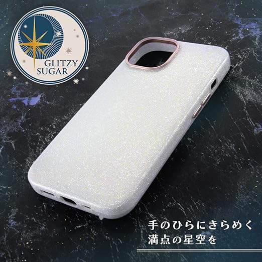 特殊なラメ加工を施したキラキラと綺麗な素材感のケース。