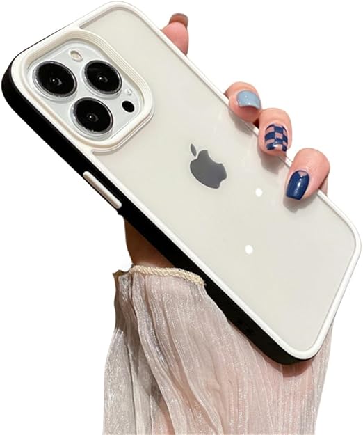 iPhone 13 Pro ケース ストラップホール付き クリア 透明 iPhone13 Pro カバー 2色 配色 薄型 可愛い レディース アイフォン13Pro 背面ケース ハードケース (iPhone13 Pro, 黒) a