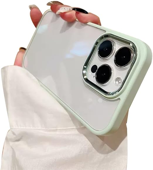 iPhone 13 Pro ケース ストラップホール付き クリア 透明 iPhone13プロ カバー 2色 配色 薄型 可愛い レディース アイフォン13プロ 背面ケース ハードケース (iPhone13 Pro, 薄緑) a