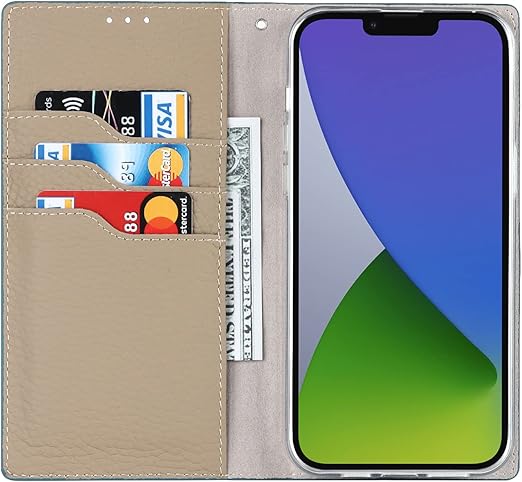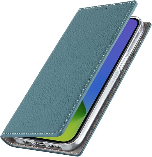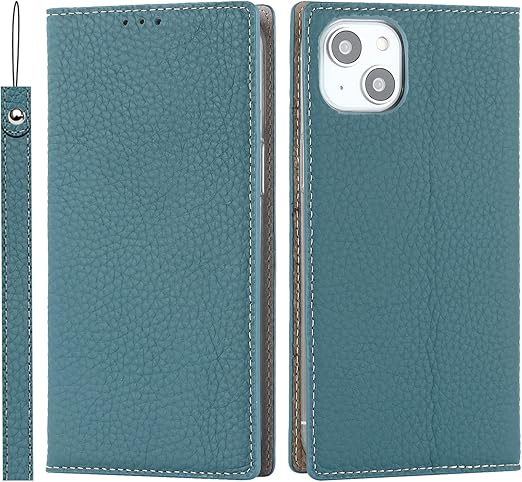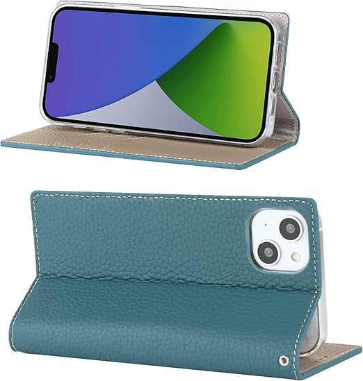 Eastwave アイフォン for iPhone 14 ケース 本革 牛革 for iPhone 14 ケース 手帳型 for iPhone14 カバー 手帳 本革 柔らかい 本皮 スプラットホール付き スプラット同梱 内蔵マグネット-ライトブルー a