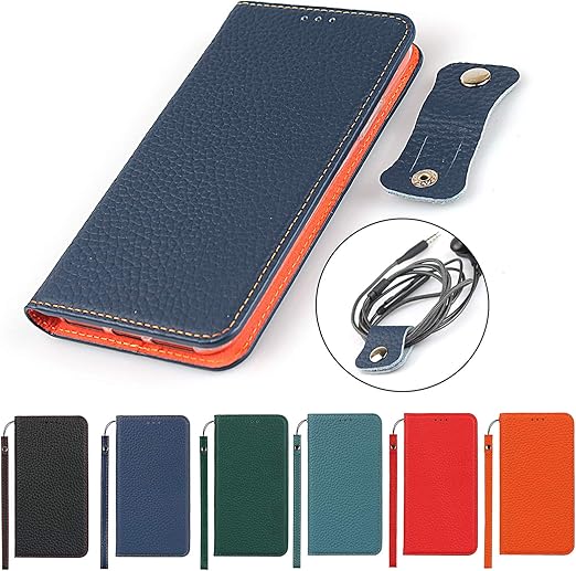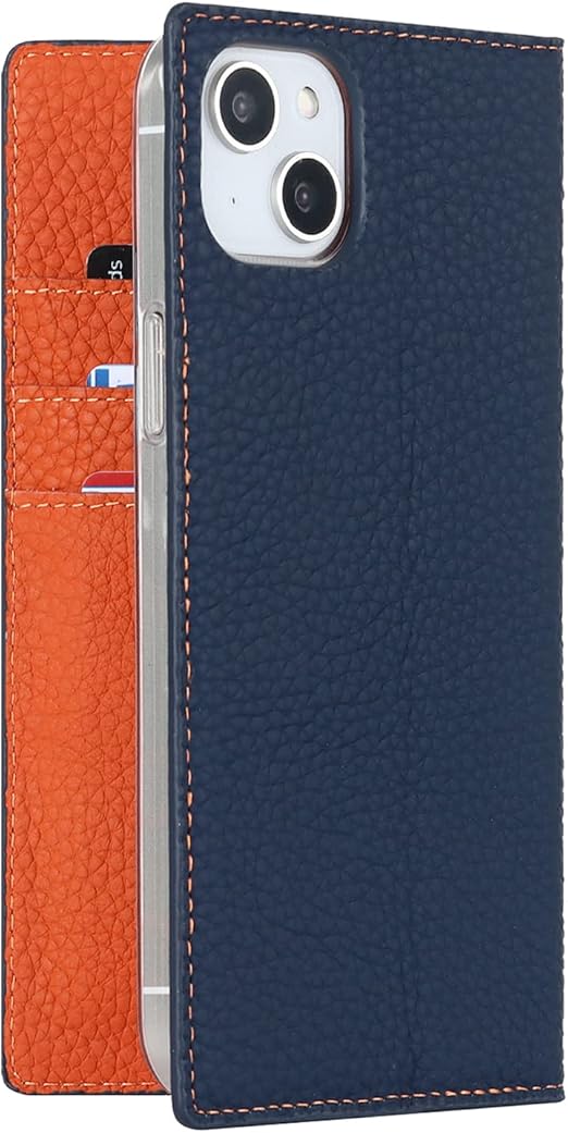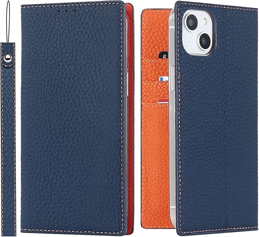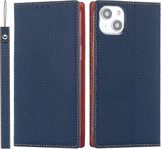 Eastwave アイフォン for iPhone 14 ケース 本革 牛革 for iPhone 14 ケース 手帳型 for iPhone14 カバー 手帳 本革 柔らかい 本皮 スプラットホール付き スプラット同梱 内蔵マグネット-ネイビー a