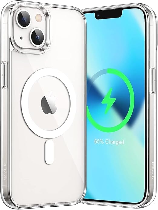 JETech iPhone 13 マグネット ケース(6.1インチ用) MagSafe ワイヤレス充電対応 衝撃吸収 バンパーカバー 傷つけ防止 透明バック (クリア) a