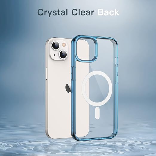 JETech iPhone 13 マグネット ケース(6.1インチ用) MagSafe ワイヤレス充電対応 衝撃吸収 バンパーカバー 傷つけ防止 透明バック (紺) a