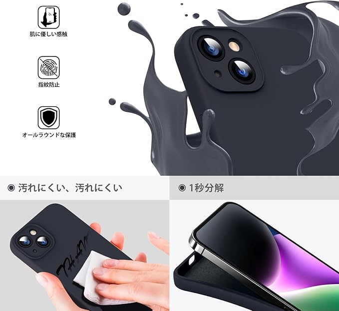 Supdeal iPhone 14 ケース 対応液体シリコン [耐衝撃] [柔軟TPU液体シリコン] [ソフトタッチ] [レンズの全面保護] [指紋防止] [落下防止] [滑り防止] 軽量 4層保護 アイフォン 14 スマホカバー 6.1インチ(ブラック) a