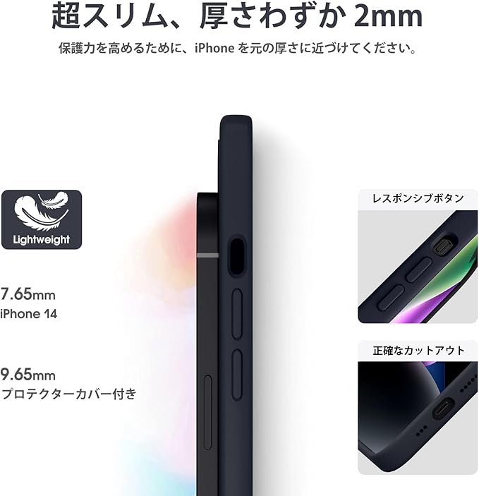【液状シリコンケース】 iPhone 14 液状シリコン超薄型携帯電話ケースと互換性があり、携帯電話ケースの背面に疎油層が追加され、指紋を効果的に防ぎ、持ちやすく、滑らかな手触りです。
