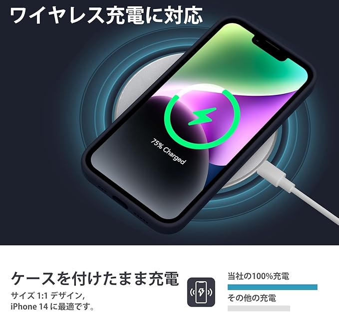【ワイヤレス充電に対応】 iPhone 14シリコンケースはワイヤレス充電に対応しており、ケースを外さずに携帯電話をワイヤレス充電できます。