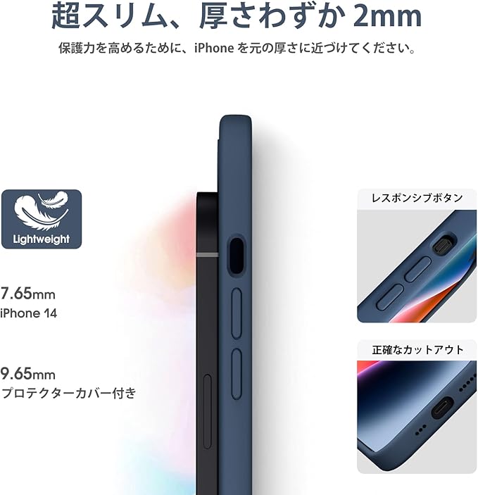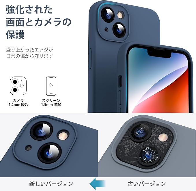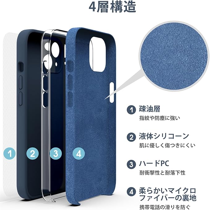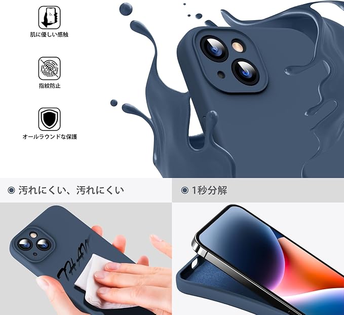 Supdeal iPhone 14 ケース 対応液体シリコン [耐衝撃] [柔軟TPU液体シリコン] [ソフトタッチ] [レンズの全面保護] [指紋防止] [落下防止] [滑り防止] 軽量 4層保護 アイフォン 14 スマホカバー 6.1インチ(ダークブルー) a
