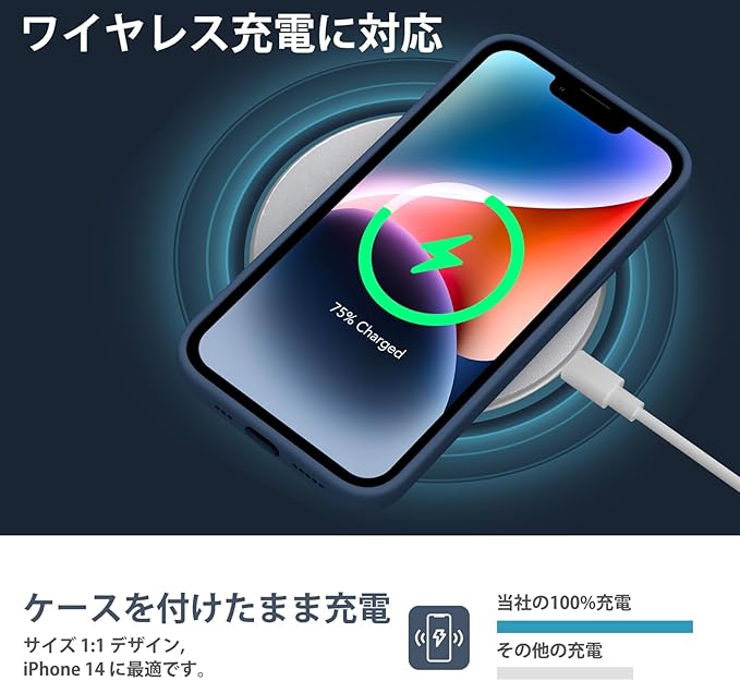 【ワイヤレス充電に対応】 iPhone 14シリコンケースはワイヤレス充電に対応しており、ケースを外さずに携帯電話をワイヤレス充電できます。