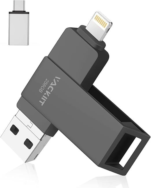 Vackiit 【MFi認証取得】iPhone用USBメモリー 256GB USBフラッシュドライブ 高速USB 3.0 フラッシュメモリー スマホ データ保存 写真 バックアップ lightningコネクタ搭載 iPhone/iPad/PC/Android/Mac兼用 容量不足解消 パスワード保護 iPad Air/mini/ iPhone 14/14 pro/13/13 pro/13 mini//12/12 pro/12 mini/11/11 Pro/ X /XR/XS MAX/6/7/8 a